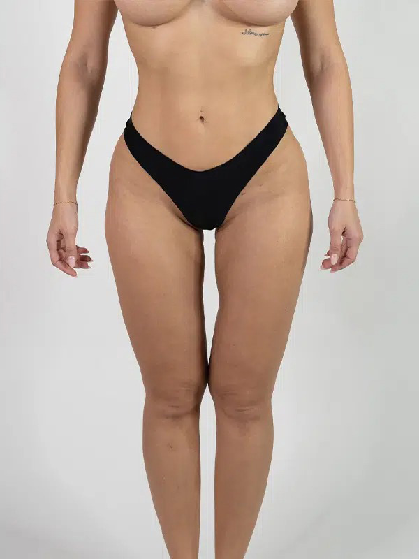 Second, she wanted a thigh gap. The surgeon extracted the minor amount of fat from her upper thighs in order to achieve the thigh gap and used it for the skinny BBL fat transfer.