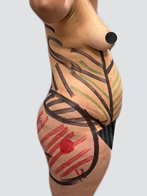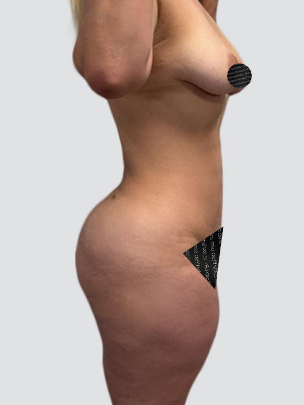 Lipo 360 is meant to slim your silhouette all the way around your midsection, and this patient is a perfect example. Liposuction removed the excess fat she carried in her stomach, flanks, and lower back to create a much-improved silhouette. Because her back and flanks are trimmer, her buttocks also appear to have better projection. What an awesome side effect!